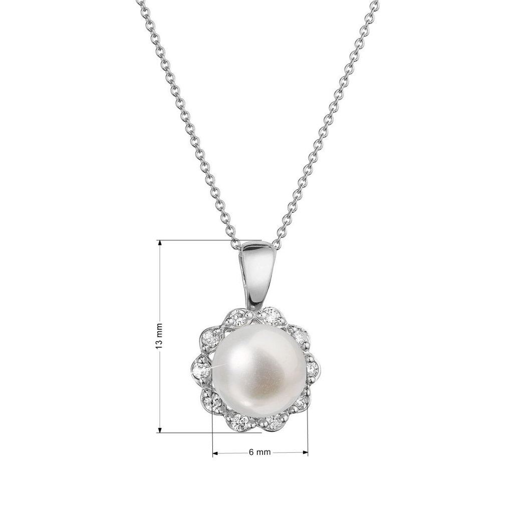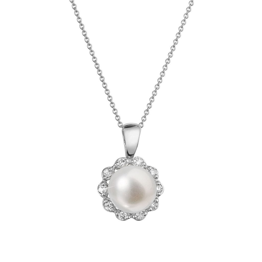 Zlatý 14 karátový náhrdelník kytička biele zlato s bielou riečnou perlou a briliantmi 82PB00036