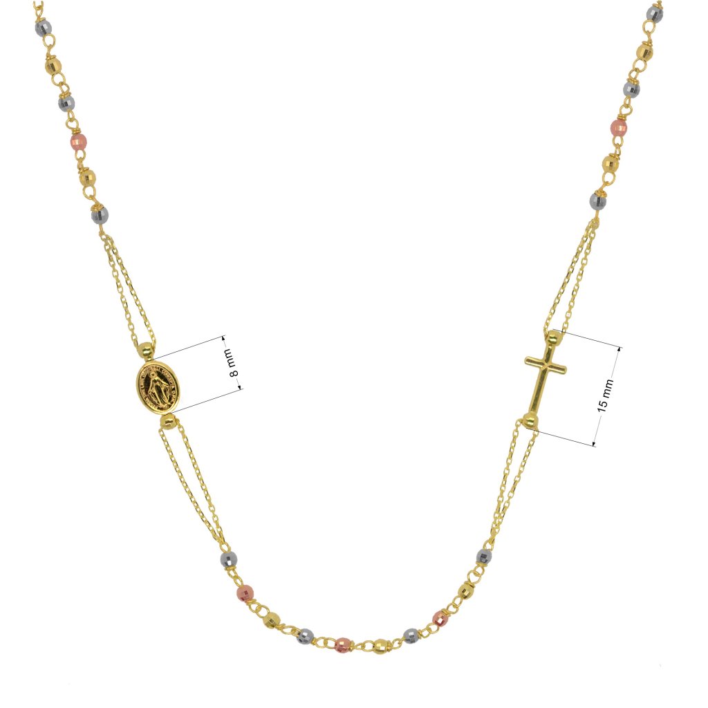 Zlatý 14 karátový náhrdelník ruženec s krížom a medailónikom s Pannou Máriou RŽ06 multi