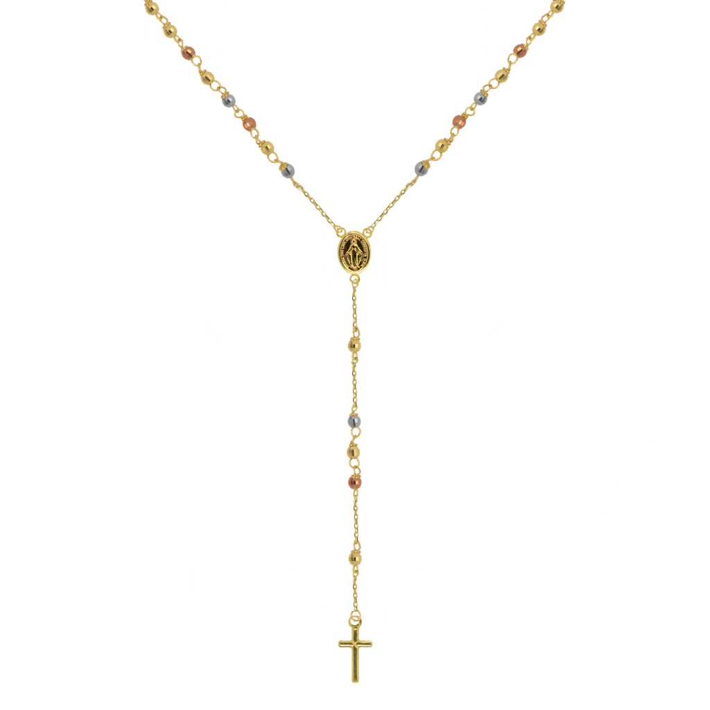 Zlatý 14 karátový náhrdelník ruženec s krížom a medailónikom s Pannou Máriou RŽ14 multi