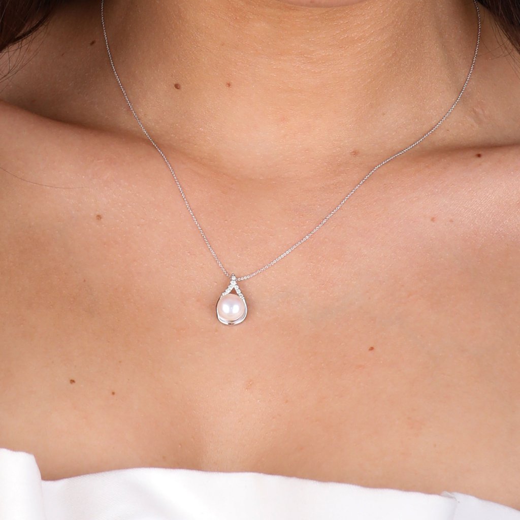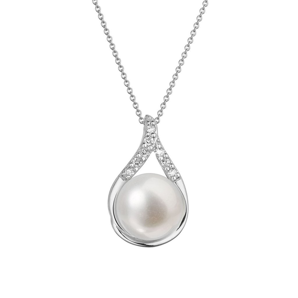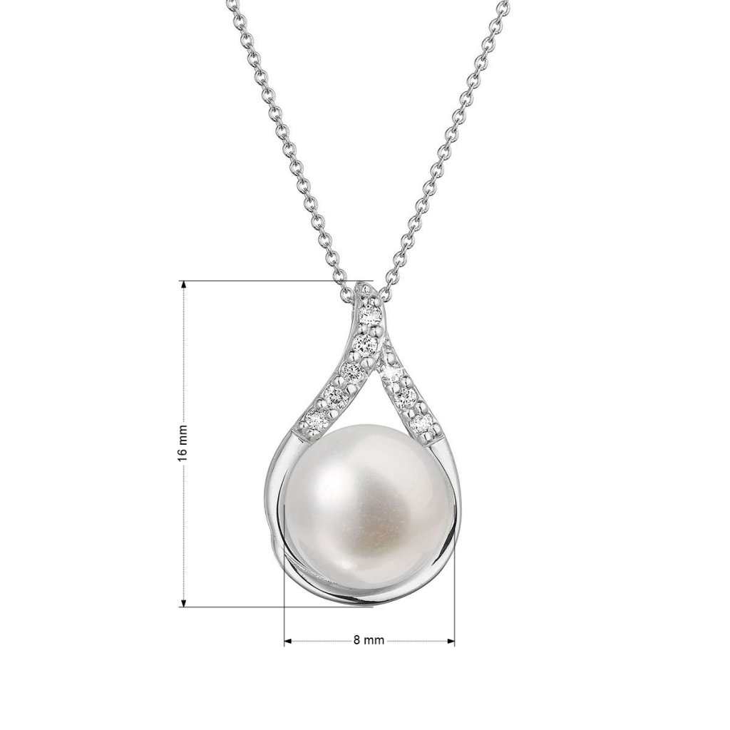 Náhrdelník s príveskom ako slzička je zo zlata a zdobí ho biela riečna perla a brilianty. Je neodolateľný, ako Vy.Na náhrdelník 82PB00032 bolo použité 14 karátové biele zlato s rýdzosťou 585/1000 a pravá kultivovaná sladkovodná riečna perla. Perla má priemer 8 mm a vysokou kvalitou AAA .