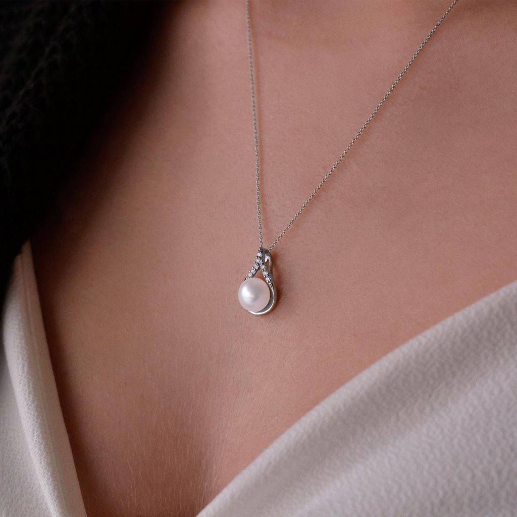 Neodolateľnosť náhrdelníka dodávajú žiarivé brilianty nad perlou. Celkom 8 briliantov má 0,072 ct.