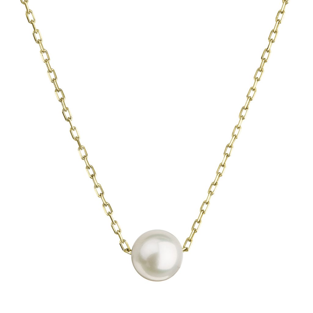 Zlatý 14 karátový náhrdelník žlté zlato s bielou riečnou perlou 92P00027