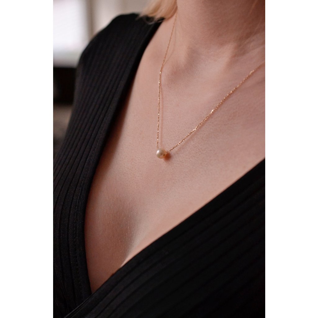 Zdobíte sa hlavne zlatými šperkami v žltej farbe zlata? Máme pre Vás zlatý náhrdelník s okúzľujúcou navlečenou bielou riečnou perlou .Náhrdelník 92P00027 je vyrobený zo 14karátového žltého zlata s rýdzosťou 585/1000, je to jemná retiazka na ktorej je navlečená okrúhla riečna perlička bielej farby . Perla patrí do kategórie kvality AAA .