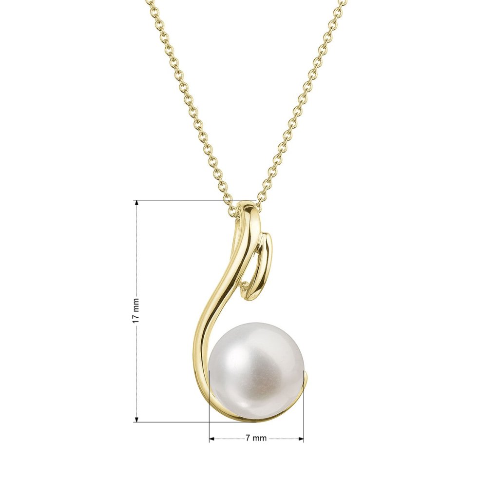 Žlté zlato v tvare slzičky poskytuje náhrdelníku moderný vzhľad , zatiaľ čo riečna perla vyzerá ako krištáľovo čistá kvapka , zachytávajúca eleganciu a čistotu.Na náhrdelník 92P00039 bolo použité 14 karátové žlté zlato s rýdzosťou 585/1000 a pravá kultivovaná sladkovodná biela riečna perla. Perla o veľkosti 7 mm je tej najvyššej kvality AAA .