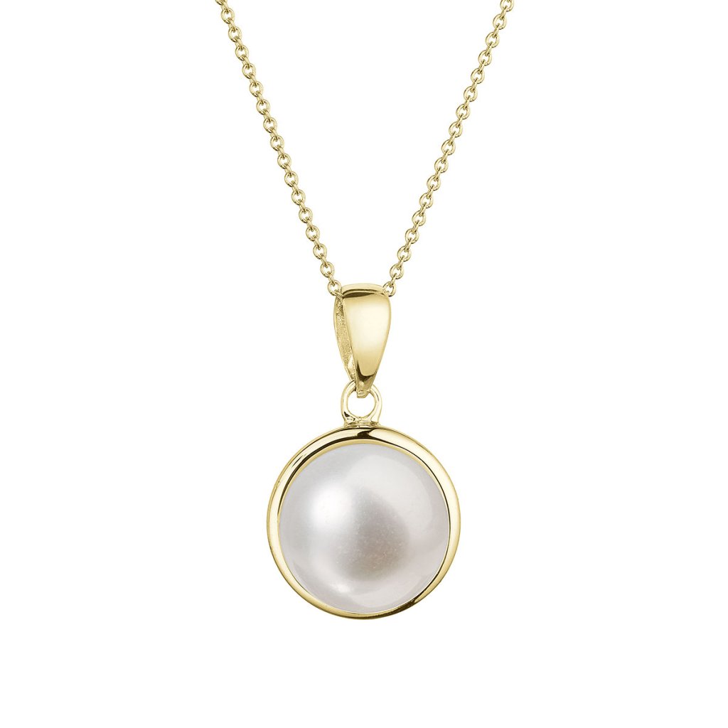 Zlatý 14 karátový náhrdelník žlté zlato s bielou riečnou perlou 92P00053