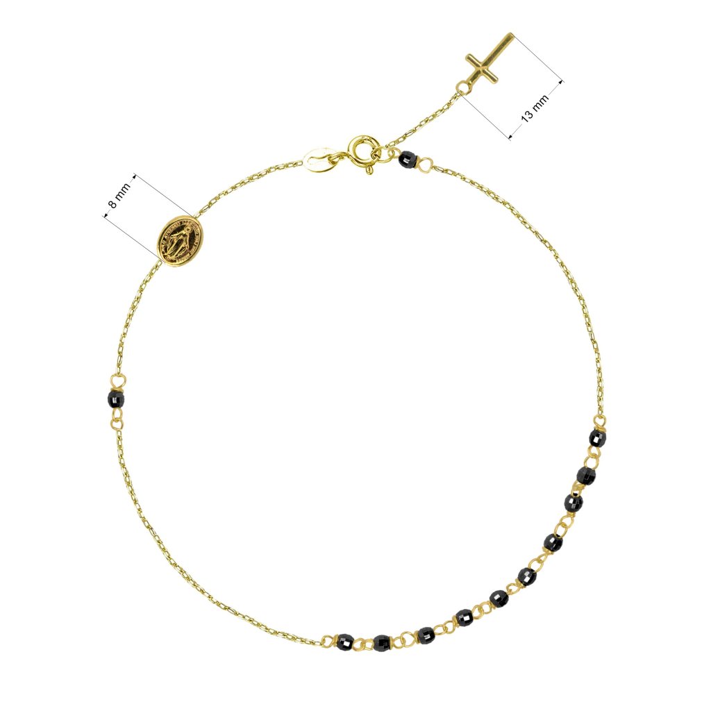 Zlatý 14 karátový náramok ruženec s krížom a medailónikom s Pannou Máriou RŽ05 čierny