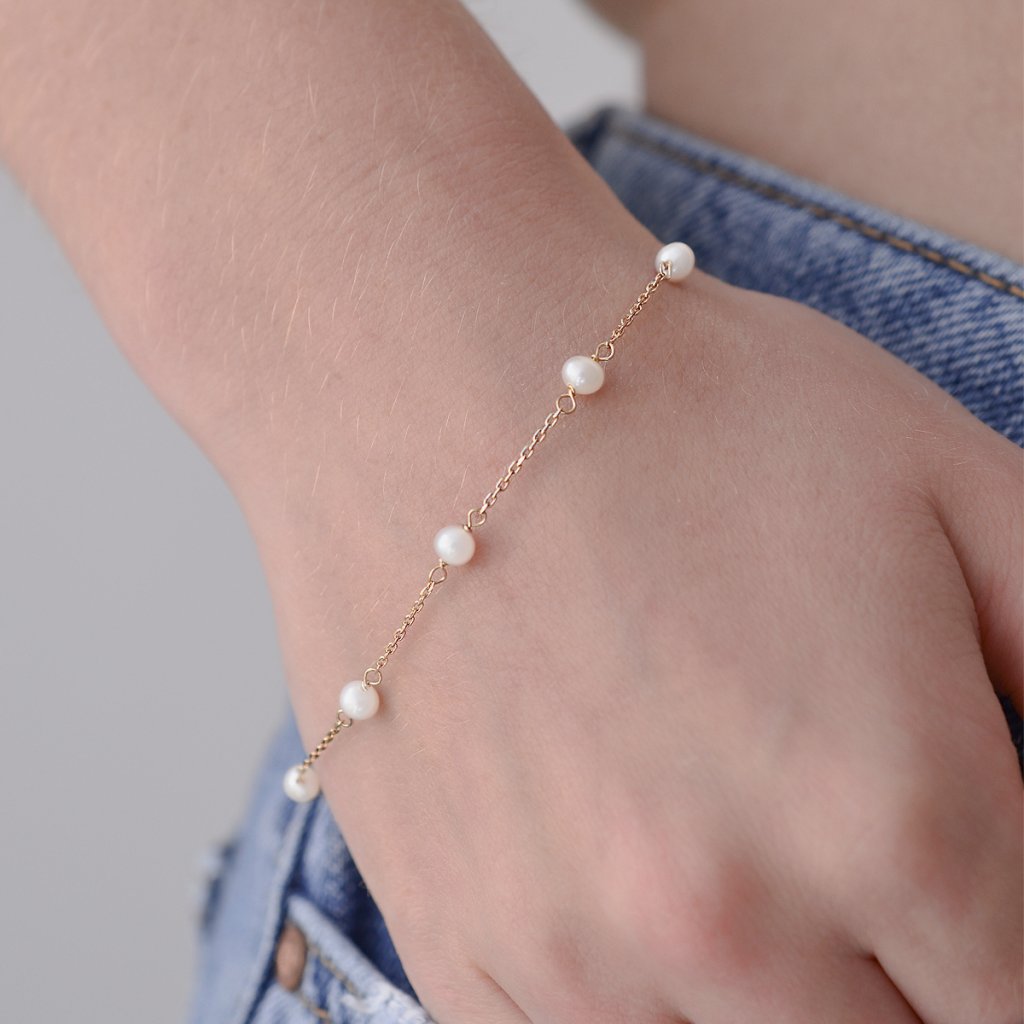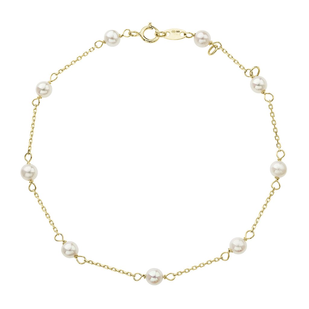 Parametre zlatého 14-karátového náramku žlté zlato s bielymi riečnymi perličkami 93P00015