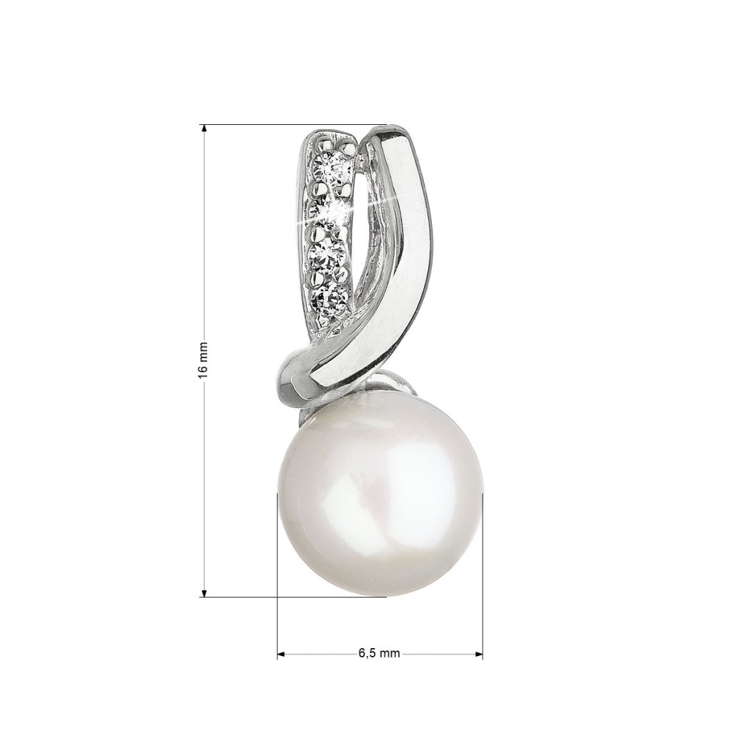 Prívesok 84PZ00006 je vyrobený zo 14 karátového bieleho zlata s rýdzosťou 585/1000 a zdobí ho okrúhla biela riečna perla tej najvyššej kvality AAA . Šírka perličky je 6,5-7 mm. Navyše sa krásne trblietajú vsadené zirkóny.