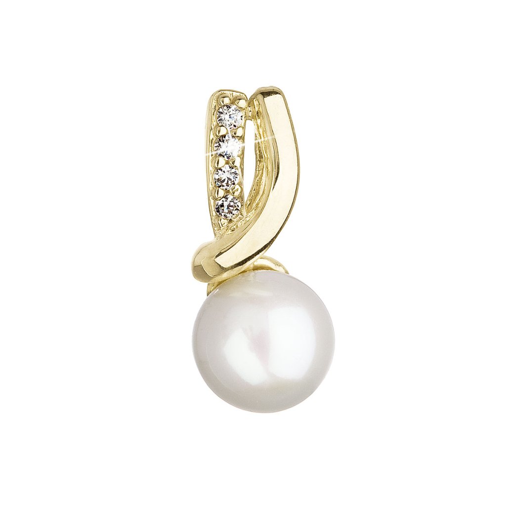 Zlatý 14 karátový prívesok žlté zlato s bielou riečnou perlou a zirkónmi 94PZ00006