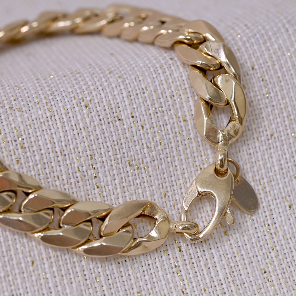 Jeho precízne brúsené a jemne zaoblené články vytvárajú harmonickú líniu, ktorá sa krásne leskne pri každom pohybe. Náramok pôsobí pevne, luxusne a zároveň dokonale ladí s moderným aj tradičným štýlom.